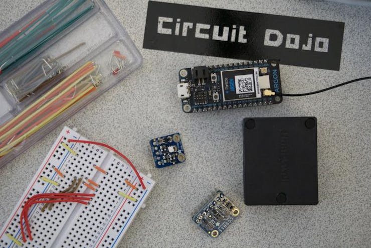 The brains of the operation is a Particle Argon. This project is also compatible with any Particle Mesh board and also anything in the Adafruit Feather footprint.