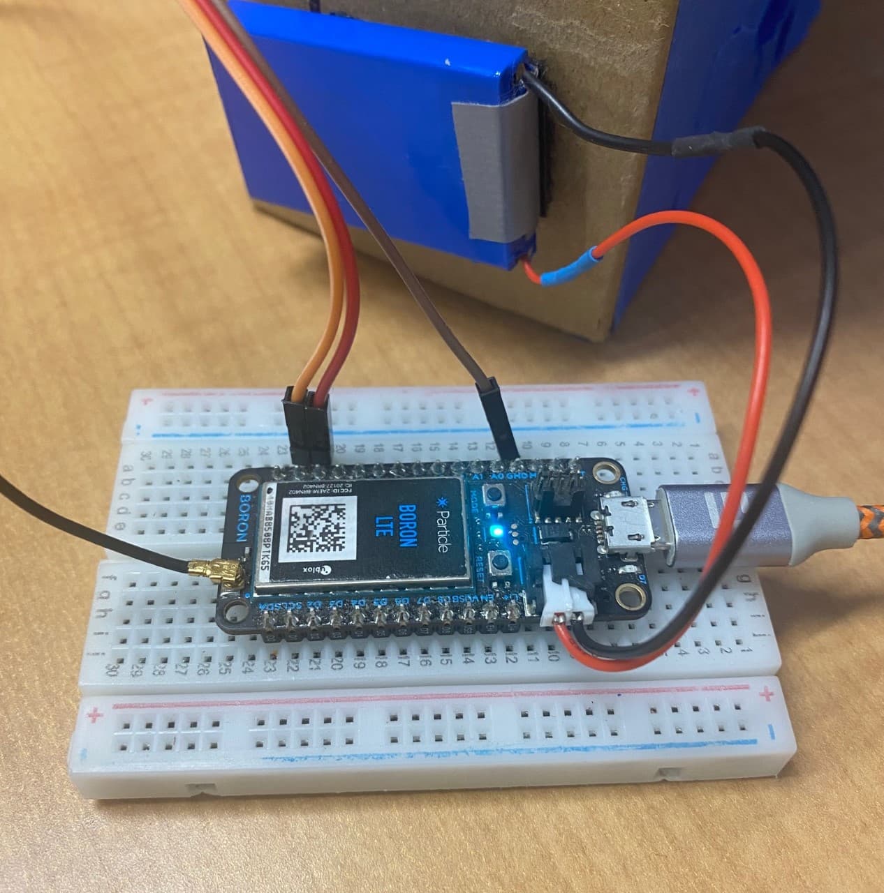 When the device is in this state, put a DMM on the 3V3 pin. If it’s not powered, then the BATFAT in the PMIC somehow got turned off. However, if that was the case, the Boron should have booted when you powered by USB, so I don’t think this is the case.
