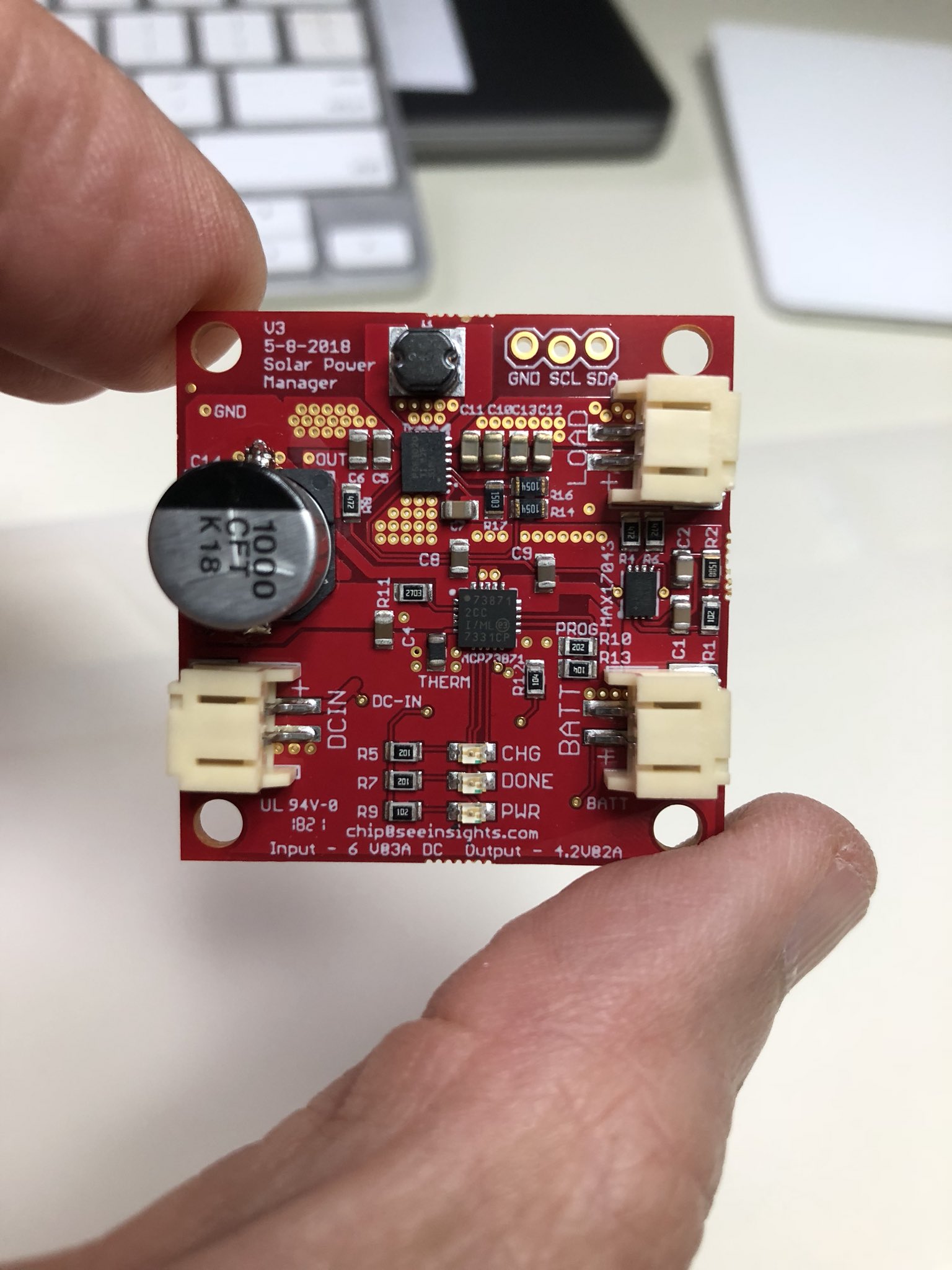I’m finding that if the voltage on the VIN comes up too slowly the PMIC is not starting properly. To attempt to overcome this, I’m measuring the supply volts on VIN, when the volts drop to below a threshold (4000mV in my test case) I disable VIN on the PMIC using the disableBuck, when the sun comes up the next day there is no load on the panel (as the disableBuck is set) and it can float to it’s open circuit voltage, when it reaches a decent level. I re-enable the Buck.